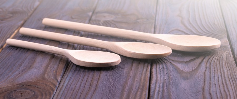 with wooden kitchen utensils—
